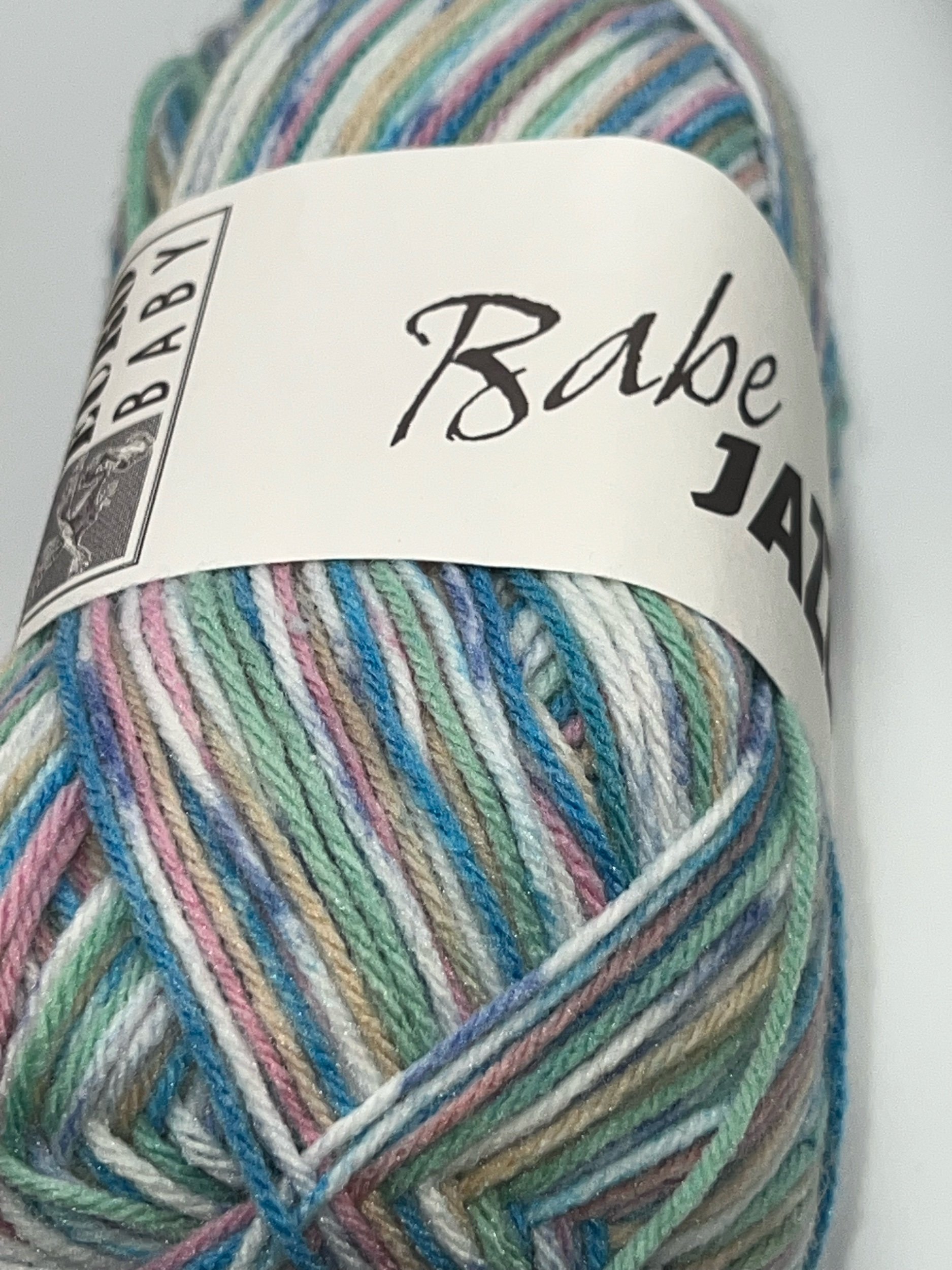 Shop › Babe Jazz Image 1 of 9 Image 2 of 9 Image 3 of 9 Image 4 of 9 Image 5 of 9 Image 6 of 9 Image 7 of 9 Image 8 of 9 Image 9 of 9 Babe Jazz Sale Price: $10.00 Original Price: $13.00 Euro Baby55% Polyamide/ 45% Acrylic356 yards/ 100 gramsLight weight 3/ Recommended needle US size 5-7 Color: 304 Forget me not BSP 305 Ladybug BSP 308 Jelly Bean Jungle BSP 309 Heaven Scent 310 Sandy Beach 312 Wonderland 313 Rocky Road Quantity: Add To Cart Added! Euro Baby55% Polyamide/ 45% Acrylic356 yards/ 100 gramsLight weight 3/ Recommended needle US size 5-7